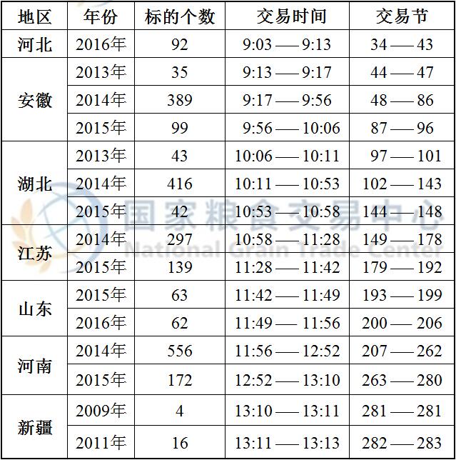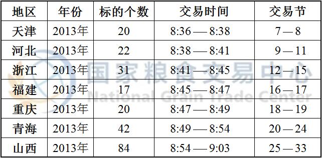 国家临时存储真菌毒素超标小麦、国家临时存储进口小麦以及最低收购价和国家临时存储小麦于8:30开市交易,分品种、分地区预估竞价交易时间如下: