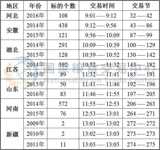国家临时存储真菌毒素超标小麦、国家临时存储进口小麦以及最低收购价和国家临时存储小麦于8:30开市交易,分品种、分地区预估竞价交易时间如下: